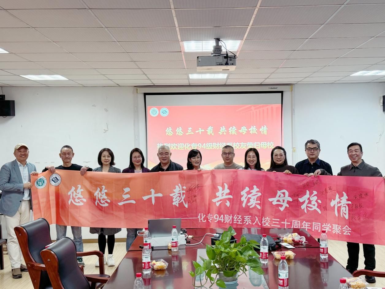 悠悠三十载,共续母校情,2024年11月2日,化专94级财经系10余名校友在入校30周年之际从全国各地荣归母校,与昔日恩师、同窗再聚首重温青葱岁月,经济与管理学院副书记、副院长朱菁,时任班主任李琳应邀参加活动。